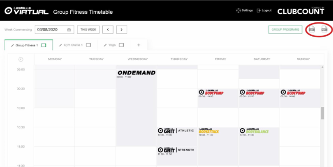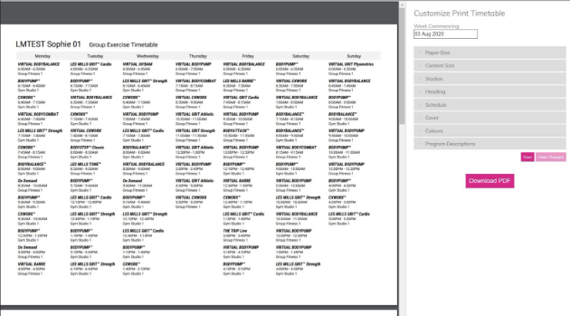 Você pode exportar o quadro de horário do Agendador LES MILLS Virtual de forma rápida, tanto para PDF quanto para CSV, dependendo do seu objetivo.