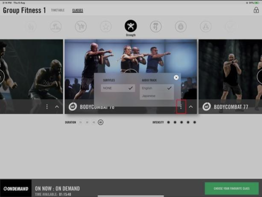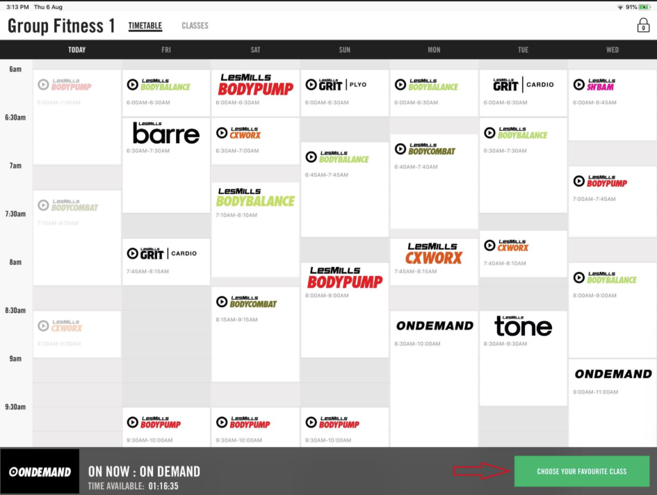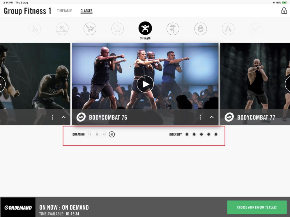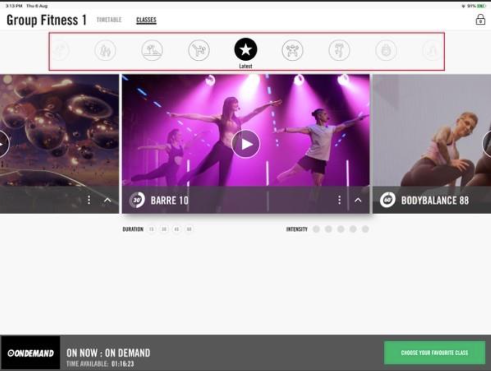 Ao tocar em “Escolher sua aula favorita”, você verá a tela inicial do On Demand: