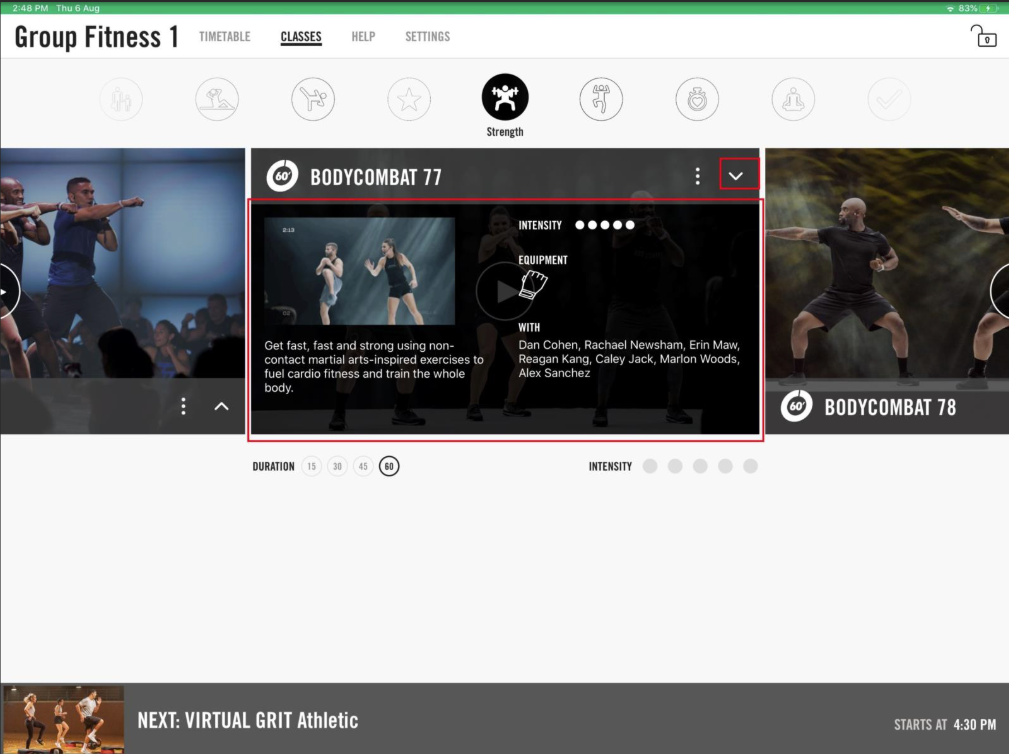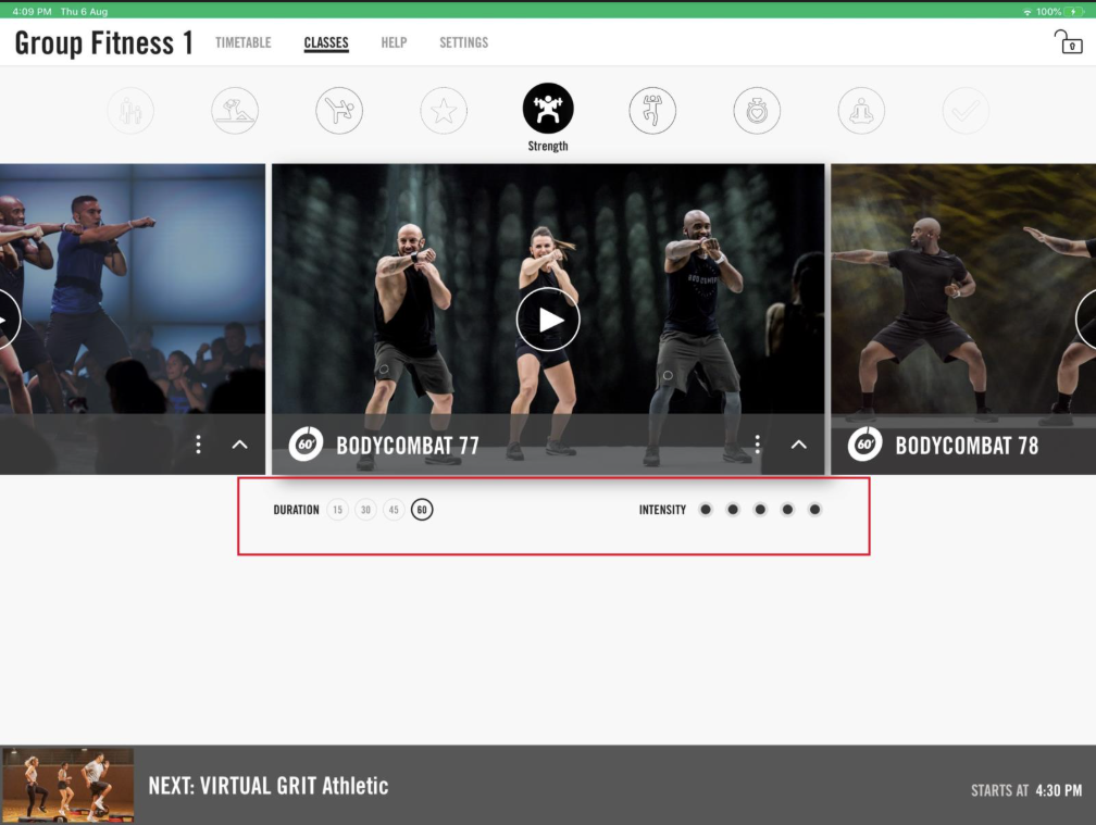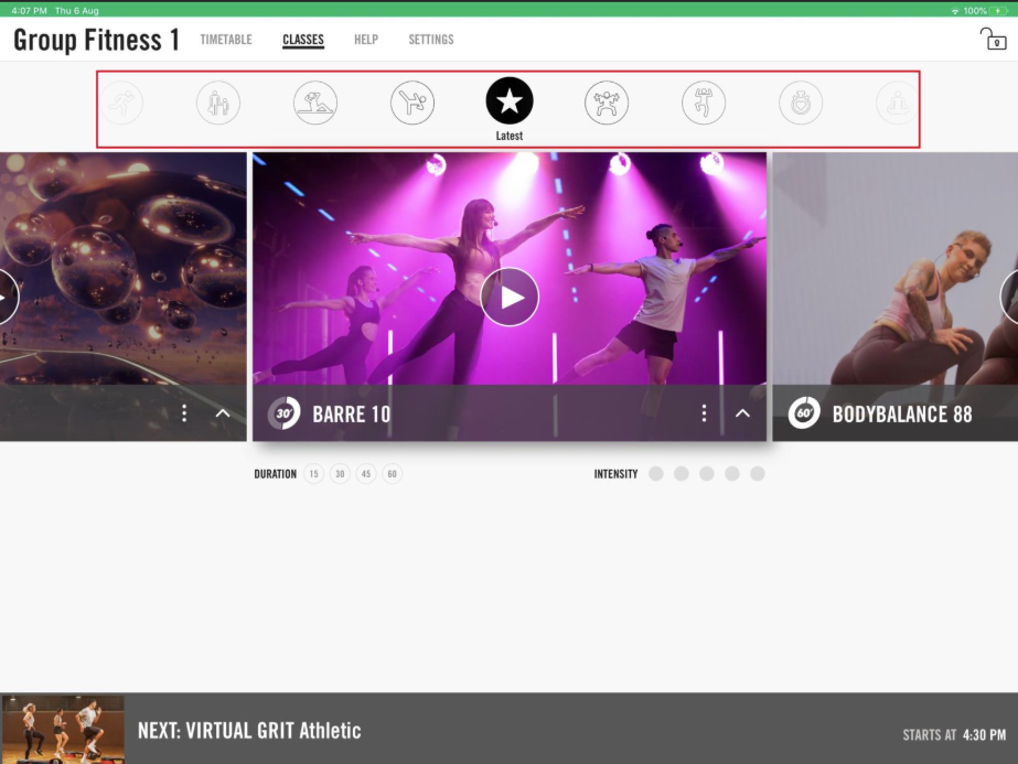 Existem opções para filtrar por duração e intensidade, como abaixo.