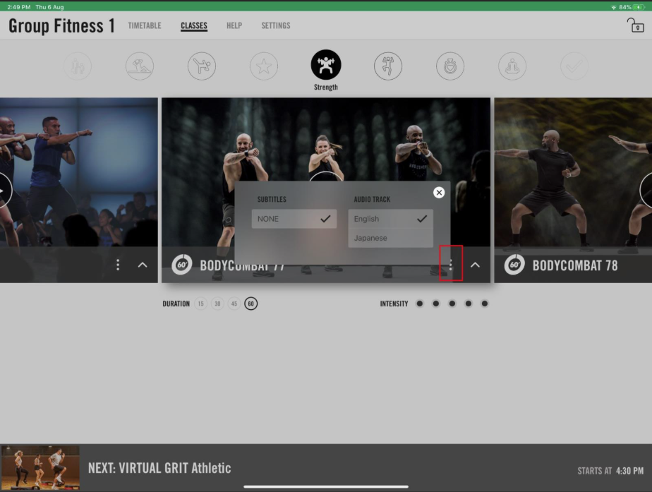 Toque nos 3 pequenos pontos no canto inferior direito para abrir as opções de áudio e legendas: